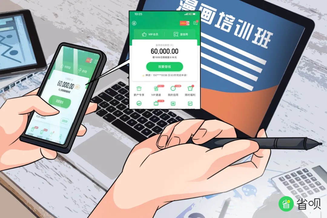 为了进一步提高职业技能,小余选择报班学习。然而也遇到了困境。“漫画助理基本都是钱少事儿多,薪酬只能保证日常生活,上培训班的学费一时间还拿不出来。就在我发愁的时候,无意间上网时刷到了省呗APP的广告,经过了解,省呗已经上线了4年多,合作了很多知名的机构。我就试着去申请下款,想不到下款非常快,让我及时提交了培训班的学费,也能够进一步提高我画画的水平了”,小余说。
