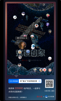在“地球”上,QQ浏览器与科技日报共同发起“神十二·欢迎回家”共创活动。随着参与人数的增加,返航画卷由灰暗至逐渐被点亮,最终呈现出“天宫号”的彩色全貌。已经有超过103万的人参与,一起点亮画卷,欢迎聂海胜、刘伯明、汤洪波3名航天员回家。