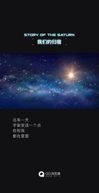 关于“我们的归宿”,QQ浏览器引用了一句话—— “总有一天,宇宙变成一个点,你和我,都在里面。” 果核第一次感受到来自宇宙的浪漫,而且随便截图都是一张手机壁纸。