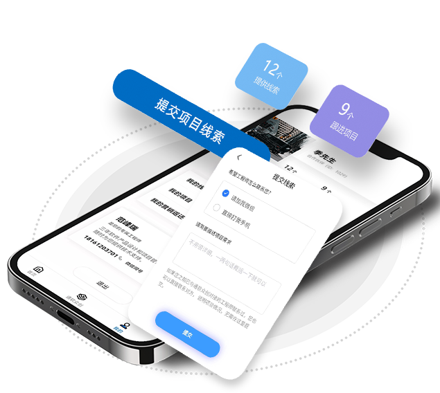 包括了提供线索、跟进项目、提取奖励等核心功能,整体风格简洁、专业。