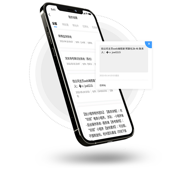 实时同步项目线索状态,包括待处理、转化中、已转化等,增加伙伴对平台的信任感。