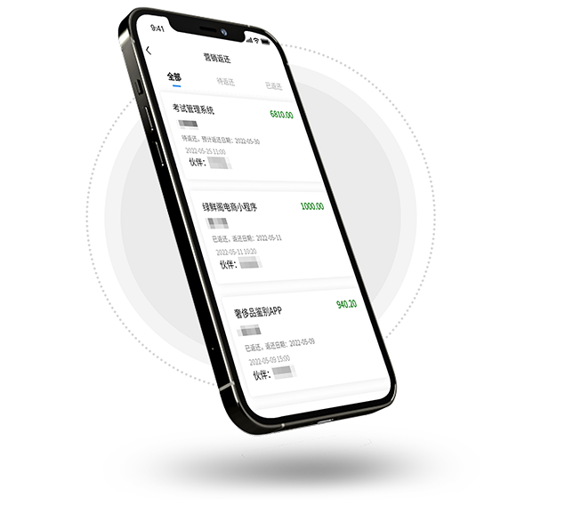 向用户展示累计合作伙伴返还营销费用、交付项目、合作伙伴总数等信息。